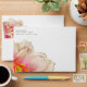 Wedding Envelope | Bold fantasy bright exotic coral rose peony flowers edged in gold - original artwork © by WhimsicalArtwork™.