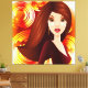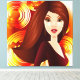 This redheaded beauty With her almond shaped eyes, is the fiery sister of Exotic Girl in Blue - she also has the look of a modern 60's girl - situated in front of orange and gold swirls- great for a focal point of any room. Perfect for office , home or lobby. Can easily be sized down -