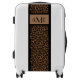 This design features an exotic leopard print pattern with a place for you to personalize it with your monogram initials, which are set against a coordinating tan background. This striking luggage will definitely stand out as it comes around the baggage carousel.