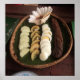Exotic lunch in North-Borneo/Malaysia .Organic way of serving food on banana leaf .The sauce is coming in a nice shell.Grilled meat with vegetables and boiled eggs .Original photo by Alma Wad .