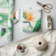Exotic colorful parrot and orange flowers pattern with green leaves. Customizable wrapping paper template
