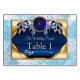 A dream-catcher design with a blue exotic-parrot bird tone feathers on GOLD with a soft blues feather background wedding theme to personalize your very own stationary theme for number and name cards for each quest on the table.
