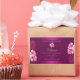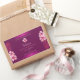 Make a lasting impression with this elegant and exotic product label design featuring lovely pink hawaiian flowers and palm leaves on a purple background. A cool palm leaf shadow matching to the shimmery border frames.