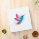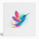 Bright, iridescent, exotic flying hummingbird on white background, painted over with multicolor, watercolor paint. Rainbow hummingbird.