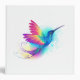 Bright, iridescent, exotic flying hummingbird on white background, painted over with multicolor, watercolor paint. Rainbow hummingbird.