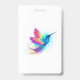 Bright, iridescent, exotic flying hummingbird on white background, painted over with multicolor, watercolor paint. Rainbow hummingbird.