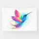 Bright, iridescent, exotic flying hummingbird on white background, painted over with multicolor, watercolor paint. Rainbow hummingbird.