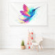 Bright, iridescent, exotic flying hummingbird on white background, painted over with multicolor, watercolor paint. Rainbow hummingbird.
