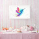 Bright, iridescent, exotic flying hummingbird on white background, painted over with multicolor, watercolor paint. Rainbow hummingbird.