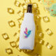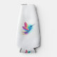 Bright, iridescent, exotic flying hummingbird on white background, painted over with multicolor, watercolor paint. Rainbow hummingbird.