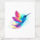 Bright, iridescent, exotic flying hummingbird on white background, painted over with multicolor, watercolor paint. Rainbow hummingbird.