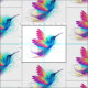 Bright, iridescent, exotic flying hummingbird on white background, painted over with multicolor, watercolor paint. Rainbow hummingbird.