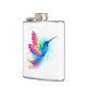 Bright, iridescent, exotic flying hummingbird on white background, painted over with multicolor, watercolor paint. Rainbow hummingbird.