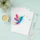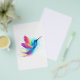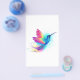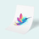 Bright, iridescent, exotic flying hummingbird on white background, painted over with multicolor, watercolor paint. Rainbow hummingbird.