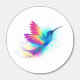 Bright, iridescent, exotic flying hummingbird on white background, painted over with multicolor, watercolor paint. Rainbow hummingbird.
