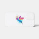 Bright, iridescent, exotic flying hummingbird on white background, painted over with multicolor, watercolor paint. Rainbow hummingbird.