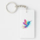 Bright, iridescent, exotic flying hummingbird on white background, painted over with multicolor, watercolor paint. Rainbow hummingbird.