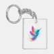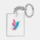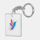 Bright, iridescent, exotic flying hummingbird on white background, painted over with multicolor, watercolor paint. Rainbow hummingbird.