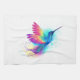 Bright, iridescent, exotic flying hummingbird on white background, painted over with multicolor, watercolor paint. Rainbow hummingbird.