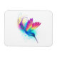 Bright, iridescent, exotic flying hummingbird on white background, painted over with multicolor, watercolor paint. Rainbow hummingbird.