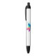 Very nice blue, or black ink pen. I will be buying more. The print was fine. I can easily see the print. The flowers look great.