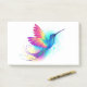 Bright, iridescent, exotic flying hummingbird on white background, painted over with multicolor, watercolor paint. Rainbow hummingbird.