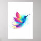 Bright, iridescent, exotic flying hummingbird on white background, painted over with multicolor, watercolor paint. Rainbow hummingbird.