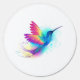 Bright, iridescent, exotic flying hummingbird on white background, painted over with multicolor, watercolor paint. Rainbow hummingbird.