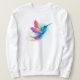 Bright, iridescent, exotic flying hummingbird on white background, painted over with multicolor, watercolor paint. Rainbow hummingbird.