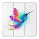 Bright, iridescent, exotic flying hummingbird on white background, painted over with multicolor, watercolor paint. Rainbow hummingbird.