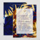 Online long distance virtual wedding ceremony invitation featuring a luxurious jungle pattern in hues of blue, burgundy and gold.