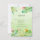 Summer wedding rsvp card featuring a flamingo, tropical greenery and exotic flowers.