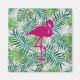 Exotic Tropical Leaves Pattern and Pink Flamingo Magnet
