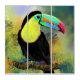 Exotic Tropical Toco Toucan Bird Triptych - MIGNED Painting Design