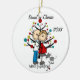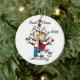 A pretty round ceramic keepsake Christmas holiday ornament features a stick figure expectant couple and their pet cat in front of a decorated Christmas tree with areas you can customize with names and the current year! This cute holiday keepsake ornament makes a great gift for the mom and dad to be to commemorate a special year!