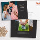 This New Years holiday photo card is perfect for a pregnancy announcement. It reads "We’re expecting a Happy New Year" with a place for the due date and family name accenting a customizable photo. The back includes a second photo and additional message.