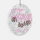 Lightweight, smooth, pure white ornament with nice sheen. Perfect size to be seen from across the room ... and to attract closer inspection! Price was great for ordering enough for the whole family! Clear, bold black design just as requested. Matches the order exactly. Just so nice!