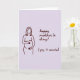 This design shows a soft lavender background that sets a quiet, tender mood. On the left, a simple line drawing of a pregnant person stands in profile, unclothed and outlined in dark reddish-brown. Their head tilts slightly forward as both hands cradle a rounded belly, suggesting a gentle bond and a private moment of affection ❤️. The figure is minimal, with smooth curves and no extra details, letting the pose carry the warmth. On the right side, a short message appears in the same reddish-brown ink, placed around mid-height with generous space around it. The lettering looks like casual handwriting, with loose, flowing strokes that feel intimate rather than formal 🌼. The overall layout feels balanced, with the figure anchoring the left and the text sitting neatly on the right against the lavender field. The only colors are the lavender background and the dark reddish-brown lines and text.