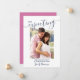 Custom photo pregnancy announcement in gender neutral navy blue and pink. The photo template is set up for you to add your own photo, which is displayed portrait format. "expecting" is lettered in elegant handwritten typography and the pregnancy announcement message is fully editable for you to customize with baby's due date and your names. A simple, modern minimalist design to share your wonderful news.