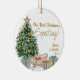 Our First Christmas expecting holiday ornament keepsake. The design features a lit christmas tree with crib and gift wrapped presents with your names and year on one side and your sonogram photo on the other side. Perfect for your first christmas pregnant with your 1st baby as a pregnancy announcement or as a little sentimental gift for yourselves.