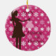 Pink and white snowflake design with a brown and pink pregnant silhouette.