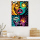 Each panel is a visual outburst—starry eyes, glowing lips, and surreal expressions—crafted in neon palettes and bold halftone shading. The split-face design symbolizes the tension between identity, technology, and emotion—making this more than just wall art... it's a visual conversation starter.