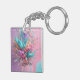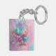 Exploding Paint Abstract Pink Turquoise Lilac Keychain