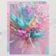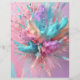 An abstract design of exploding paint with a faux 3d effect in a color palette of pink, turquoise, lilac, coral and ivory.
