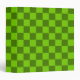 Green and dark green checkerboard pattern, creating a geometric, symmetrical design. The alternating squares evoke a sense of balance and uniformity.