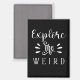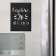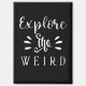 This bold black and white typography design features the phrase “Explore the Weird” in a mix of playful script and elegant serif fonts. The contrasting styles give it a quirky yet stylish vibe, with decorative flourishes and accent marks adding extra flair. Perfect for those who embrace curiosity, uniqueness, and the beauty of the unusual, this design makes a striking statement with its minimalist monochrome palette.