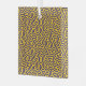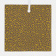 Abstract pattern with intertwined, wavy yellow lines on a dark purple background. The design is dynamic and creates a maze-like, vibrant effect.