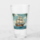 It is a transparent glass cup with a picture of an exploration ship.