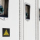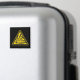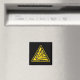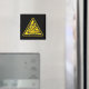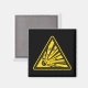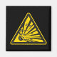 Black square magnet with yellow and black explosive warning sign.