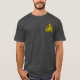 Subtle science humor tshirt with a yellow and black triangular warning sign with the graphic symbol for "explosive".